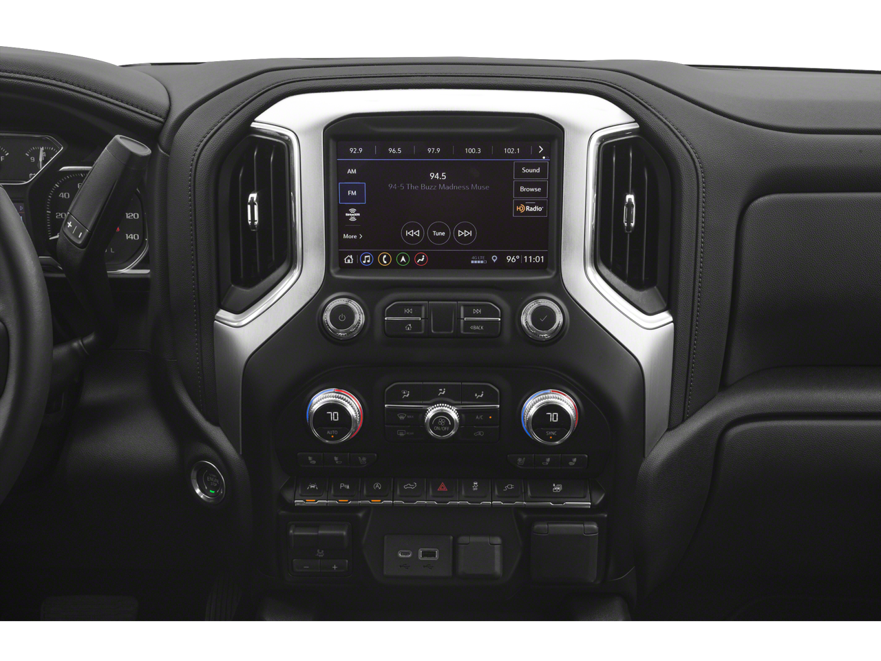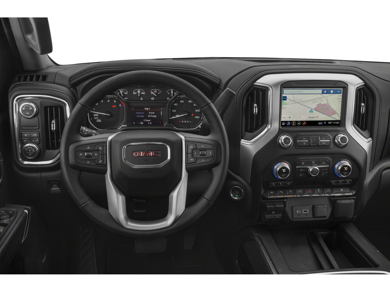 SLT Convenience Package: Ventilated Driver and Front Passenger Seats; Heated 2nd Row Outboard Seats; Power Sliding Rear Window with Rear Defogger; 2 USB Ports (1st Row); Floor-Mounted Center Console; Front Bucket Seats; 2 USB Ports; Universal Home Remote. Driver Alert Package I: Ultrasonic Front and Rear Park Assist; Rear Cross Traffic Alert; Perimeter Lighting; Lane Change Alert with Side Blind Zone Alert. Driver Alert Package II: Forward Collision Alert; Lane Keep Assist with Lane Departure Warning; Front Pedestrian Braking; Following Distance Indicator; Automatic Emergency Braking; Safety Alert Seat; IntelliBeam Automatic High Beam On/off; Adaptive Cruise Control. X31 Off-Road Package: 2-Speed Transfer Case; Hill Descent Control; Dual Exhaust with Premium Tips; Off-Road Suspension; Skid Plates; Heavy-Duty Air Filter; X31 Hard Badge. SLT Preferred Package: Premium Bose 7-Speaker Sound System; Wireless Charging; Premium GMC Infotainment System Radio with Navigation. Texas Edition SLT Premium Plus Package: 20" X 9" Polished Aluminum Wheels; Chrome Wheel to Wheel Assist Steps; Texas Edition Badging; Spray-On Pickup Bed Liner with GMC Logo; 10-Speed Automatic Transmission. Preferred Equipment Group 4SA: LED Cargo Area Lighting; Remote Vehicle Starter System; Electric Rear-Window Defogger; 5.3L EcoTec3 V8 Engine; Theft Deterrent System (unauthorized Entry); Chrome Grille; 170 Amp Alternator; Auxiliary External Transmission Oil Cooler; Compass; Electrical Lock Control Steering Column; Trailering Package; 120-Volt Instrument Panel Power Outlet; Heated Driver and Front Outboard Passenger Seating; Steeri